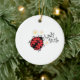 Lightweight, smooth, pure white ornament with nice sheen. Perfect size to be seen from across the room ... and to attract closer inspection! Price was great for ordering enough for the whole family! Clear, bold black design just as requested. Matches the order exactly. Just so nice!