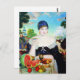 Lady Drinking Tea with Cat. Oil on canvas from 1918. One of the great commercial and art nouveau painters working in Russia, Boris Kustodiev employed a style that emphasized bright colors, sharp figures and striking landscapes. This is one of his most charming paintings which features a merchant’s wife drinking tea before a rich table set with watermelon, fruit, bread and beautiful pewter ware. A happy cat rubs up against her shoulder. The woman wears a pretty blue bonnet and the summer in Moscow is warm with a bright sky. A great gift for fans of Boris Kustodiev, Russian Art, cat paintings, and art nouveau.