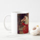 John Collier Lady Godiva mug. Oil painting on canvas from 1897. Pre-Raphaelite painter John Collier’s most famous painting, Lady Godiva depicts the legendary Anglo-Saxon noblewoman riding into to town on her horse in protest of her husband’s high taxes. The horse she rides is white and tall and wears a red horse blanket and bridle. A pretty gift for fans of John Collier, The PreRaphaelites, Lady Godiva, and History Paintings.