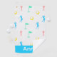 This golf towel showcases a delightful lady golfer icon in vibrant blue, green, and pink hues against a crisp white backdrop. Personalize this towel with her name for a truly special touch. This personalized golf towel makes a thoughtful and memorable gift for any golf enthusiast.