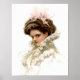 Brunette lady with pink bow and frilly cape is the focus of this pretty vintage poster.