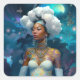 Lady In Surreal World Cosmic African American Art Square Sticker