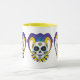 Get ready for your Mardi Gras party with this colorful Lady Jester skull with fleur de lis, jewels and heart.