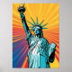 Lady Liberty emerges in vibrant Pop Art style, a captivating fusion of bold colors and dynamic lines. The iconic statue takes on a contemporary twist, with hues like vivid green, orange, and violet, creating a visually striking composition. The artwork pays homage to the Statue of Liberty, celebrating its symbolism with a modern, energetic flair. This Pop Art rendition captures the essence of freedom and cultural significance in a cool and lively manner, making it a unique and impactful piece.