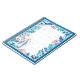 The Regina Coeli Gregorian Chant provides the background for this traditional image of Our Lady of Grace surrounded by a variety of blue flowers. Text may be added to the front if desired.
