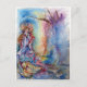 Colorful ,whimsical ,romantic, symbolist contemporary watercolor painting in soft blue,pink ,red, purple, violet, white colors for a spiritual,mystic Celtic legend by Alessandro Lumini 1989 .This cool and artistic design is also a beautiful gift for special occasions ,birthdays ,weddings,Christmas, holiday,Valentine's Day,Mardi Gras ( Fat Tuesday ) season. ----Vivien , this mysterious female gave Arthur his sword, Excalibur. She stole Lancelot when he was a child and cured him when he went mad. She may be a Celtic lake divinity in origin, perhaps of the same kind as the Gwagged Annwn - lake fairies in modern Welsh folklore. Vivien may very well have been the Lady of the Lake in the Arthurian Legends and stories. She, sometimes called Nineve, Nimue, Niniane, etc., is best known as the woman who sealed Merlin in a cave or a tree.