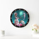 LADY OF THE SEASHELLS, SEAHORSE AND PINK BLUE GEMS LARGE CLOCK