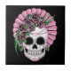 Lady sugar skull with roses in hues of pink is a beautiful Dia de los Muertos skull design the ladies will love.
