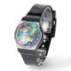 Colorful ,whimsical ,vibrant watercolor painting in bright red,pink,fuchsia,blue,purple,yellow colors with gold, silver foil and iridescent colors inspired from Carnival in Venice.