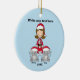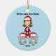 This will be a keepsake of all times! It's an adorable lady dressed in red Santa outfits and hats. It has a light blue background. There's two cats next to her. Personalize with names and a year. Check out the other family combinations and ornaments in our store. ©JW Illustrations