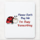 Revised Ladybug design for Medical Transcriptionists. Text says: "Please don't bug me...I'm busy transcribing!" Whimsical way to let others know we need peace and quiet while we work!
