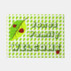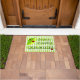 Doormat you can personalize features a cute ladybug and leaf pattern.