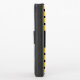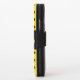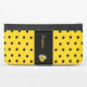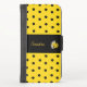 Fun wallet style iPhone case, with graphics of a yellow with black polka dot pattern and a solid black band running across the middle of the case. Cute graphics of a yellow and black ladybug decorates the band, along with yellow custom text ready to personalize. Makes a great gift idea.