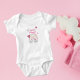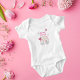 This adorable ladybug one-piece bodysuit is super sweet! With its vibrant pink lady bugs fluttering around a beautiful rainbow, hearts and whimsical details, this one-piece makes the perfect baby shower or newborn gift.
