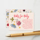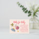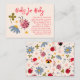 Cute ladybug theme baby shower book request card featuring illustration of the insect and wildflowers. The card asks guests to bring in a new or used children's book instead of a card.