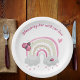 These adorable baby shower plates are super sweet and a perfect complement to a ladybug or boho theme baby shower. With their vibrant pink and black ladybugs and beautiful rainbow, these plates are sure to be a crowd pleaser. Personalize to make them your own.