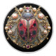 Gorgeous Art Deco image of a metallic look ladybug. Pretty gold filigree leaves with diamonds pink pearls and red rubies.