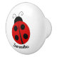 Ladybug with Black Dots Design Ceramic Knobs with customizable text and background color.