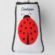This ladybug design golf club head cover is an accessory that you slide over the head of a golf club for protection against knocks whilst sitting in your golf bag. Made out of polyester, cotton, and marine vinyl with a choice of different piping colours. You can customise this golf club head cover with any text. You can also change the background colour by clicking on the edit this design button. Should you require any help with customising then contact us through the message link on this page. Ladybird design golf club head cover.