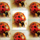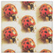 This animal nature fabric features a repeating pattern of a ladybug, (Coccinellidae) also known as the ladybird, lady cow or lady beetle, with red, orange and yellow coloring and black spots. This insect is a famous friend of the gardener who feeds on aphids and other garden pests.