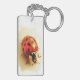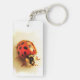 This nature acrylic keychain features a ladybug, (Coccinellidae) also known as the ladybird, lady cow or lady beetle, with red, orange and yellow coloring and black spots. This insect is a famous friend of the gardener who feeds on aphids and other garden pests.