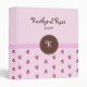 This binder makes a great scrapbook or photo album*. A brown frame with pink dots around it is atop a pink ribbon with a lacy edge. A pattern of adorable pink and brown lady bugs have a light pink background. *PLEASE NOTE that photo album pages are NOT included with this.