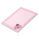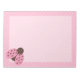 An adorable pink and brown ladybug is on a light pink polka dot background.