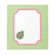 A cute ladybug is crawling on this notepad. Use this notepad for shopping lists, grocery lists, notes, etc...Use this ladybug notepad in a school, classroom, office, home, kitchen, etc...This notepad is great for teachers, students, etc. The design is from original art.