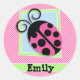Ladybug on Pink & White Stripes Classic Round Sticker