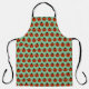Great color and even though I ordered the kid size, it covers well enough to use during the holidays. I am not a big woman and prefer a shorter apron. I stand 5"6" and the length of the garment goes to mid-thigh. The tie straps fit well at my waist and even though there is no neck strap adjustment, the opening is plenty big enough. I am happy with the size and fit. I am sharing my apron with my 10 year old grandson, too! The color is vibrant and looks good, as shown on the website. The stitching looks strong and reinforced. Photographed is front side and back side of the apron, reinforced straps and coloring. My phone camera may not be the best at showing the details.