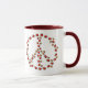 Peace Symbol Made with ladybugs also called ladybirds, lady bugs, lady beetles on a mug with red trim.