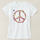 Peace sign made of yellow, orange, and red ladybugs with a blue ladybug off to the side.