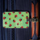 A hand-painted ladybug pattern with green white light blue petals background by artist and designer Susan Gottardi.