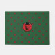 Four types of ladybugs; seven-spotted, two-spotted, pink-spotted, and Asian; make a polka dot pattern on a green background. Also called ladybirds or lady beetles, these insects protect farms and gardens from pests, particularly aphids. Customize the monogram on this doormat to greet your guests with a unique decoration.