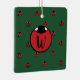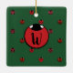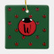 Four types of ladybugs; seven-spotted, two-spotted, pink-spotted, and Asian; make a polka dot pattern on a green background. Also called ladybirds or lady beetles, these insects protect farms and gardens from pests, particularly aphids. Customize the monogram on this ornament with your initial to make it uniquely your own.