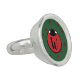 Four types of ladybugs; seven-spotted, two-spotted, pink-spotted, and Asian; make a polka dot pattern on a green background. Also called ladybirds or lady beetles, these insects protect farms and gardens from pests, particularly aphids. Customize the monogram on this ring with your initial to make it uniquely your own.