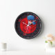 The size of the clock is dramatic and the abstract alcohol ink design is soothing and intricate at the same time. I chose the black frame that adds pop to the blue and gold design. The gold printing would be better in a slightly darker or larger font. I love it and I’m looking for just the right place in ny new apartment. I would recommend this clock for a personal gift or a present. I feel that the quality is excellent for the money! I’m a bit of a clock nut so I’m pretty particular about my purchases. The clock is larger in diameter than many if the clocks I have, so it stands out very well. I think a slightly darker printing color and a moderately larger size would best suit a professional decor or add more impact in a work place item.