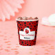 Custom ladybug 1st Birthday Party paper cup featuring a cute lady bug and vibrant typography on red and black polka dots background. Perfect party supplies for ladybug themed birthday party.