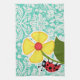 Ladybug; Seafoam Green Damask Kitchen Towel