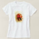This tee shirt features a ladybug, (Coccinellidae) also known as the ladybird, lady cow or lady beetle, with red, orange and yellow coloring and black spots. This insect is a famous friend of the gardener who feeds on aphids and other garden pests.