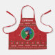 Great color and even though I ordered the kid size, it covers well enough to use during the holidays. I am not a big woman and prefer a shorter apron. I stand 5"6" and the length of the garment goes to mid-thigh. The tie straps fit well at my waist and even though there is no neck strap adjustment, the opening is plenty big enough. I am happy with the size and fit. I am sharing my apron with my 10 year old grandson, too! The color is vibrant and looks good, as shown on the website. The stitching looks strong and reinforced. Photographed is front side and back side of the apron, reinforced straps and coloring. My phone camera may not be the best at showing the details.