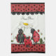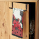 Cute, whimsical animal theme featuring mom, dad and baby ladybug out for a stroll. Mrs. Ladybug has a daisy flower umbrella. Red and black polka dot background.Customize text or delete.