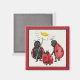 Cute, whimsical art featuring mom, dad and baby ladybug out for a stroll in the garden. Mrs. Ladybug has a daisy flower umbrella.