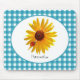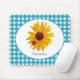 A cute blue gingham mousepad with a bright and cheery yellow sunflower with a cute little red spotted ladybug sitting on its petals. Personalize by adding your name to this country style design sure to put you in a happy summertime picnic mood!