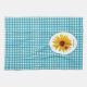 A cute blue gingham towel with a bright and cheery yellow sunflower with a cute little red spotted ladybug sitting on its petals. Personalize by adding your name to this country style design sure to put you in a happy summertime picnic mood!
