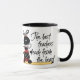 Cute teacher's coffee mug, with graphics of a ladybug holding a pencil, on one side of the mug and another ladybug standing on a big pencil. Graphic text in black reads, The best teachers teach from the heart. Makes a great gift for your favorite teacher. Great for home or school.