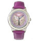 Pretty lavender watch is embellished with a cream and pink ladybug covered in roses and violets in pink and purple. Delicate and cute with a vintage feel. Numbers optional.