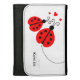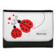 You will love this pair of red ladybugs with heart shaped black spots on white background personalized with your name and monogram.