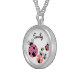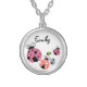 This necklace features an adorable image of ladybugs, and a fully customizable name or monogram on the top center.