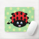 This cartoon mousepad features a cute red ladybug against a green background with yellow flowers. You can easily customize the background color of the mousepad or remove the flower pattern if you like. A nice gift idea for animal and nature lovers.